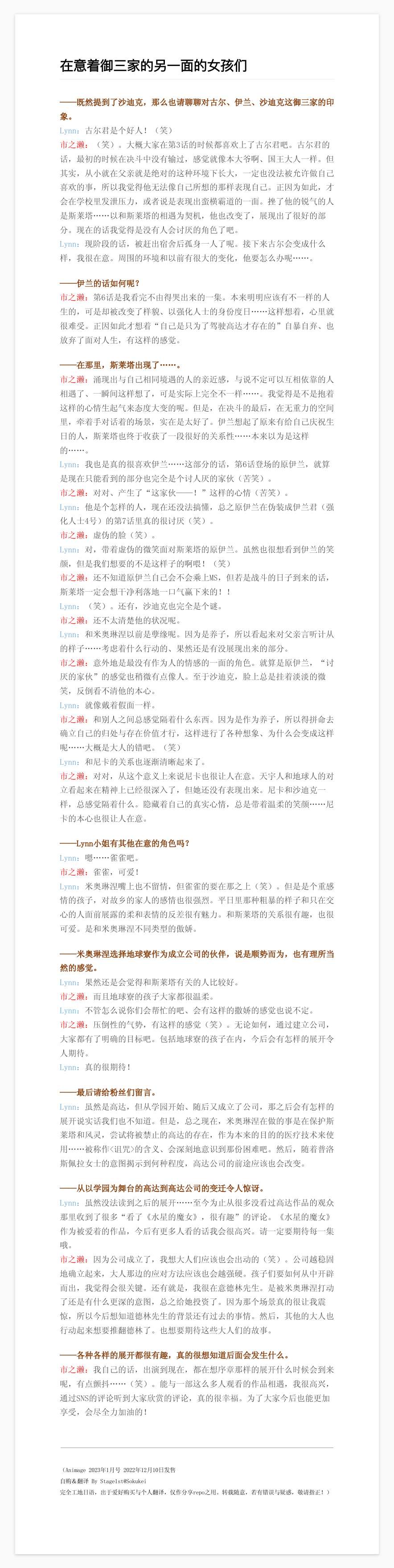 [新番] 2022.10 新作TV动画『机动战士高达 水星的魔女』②号专楼 |