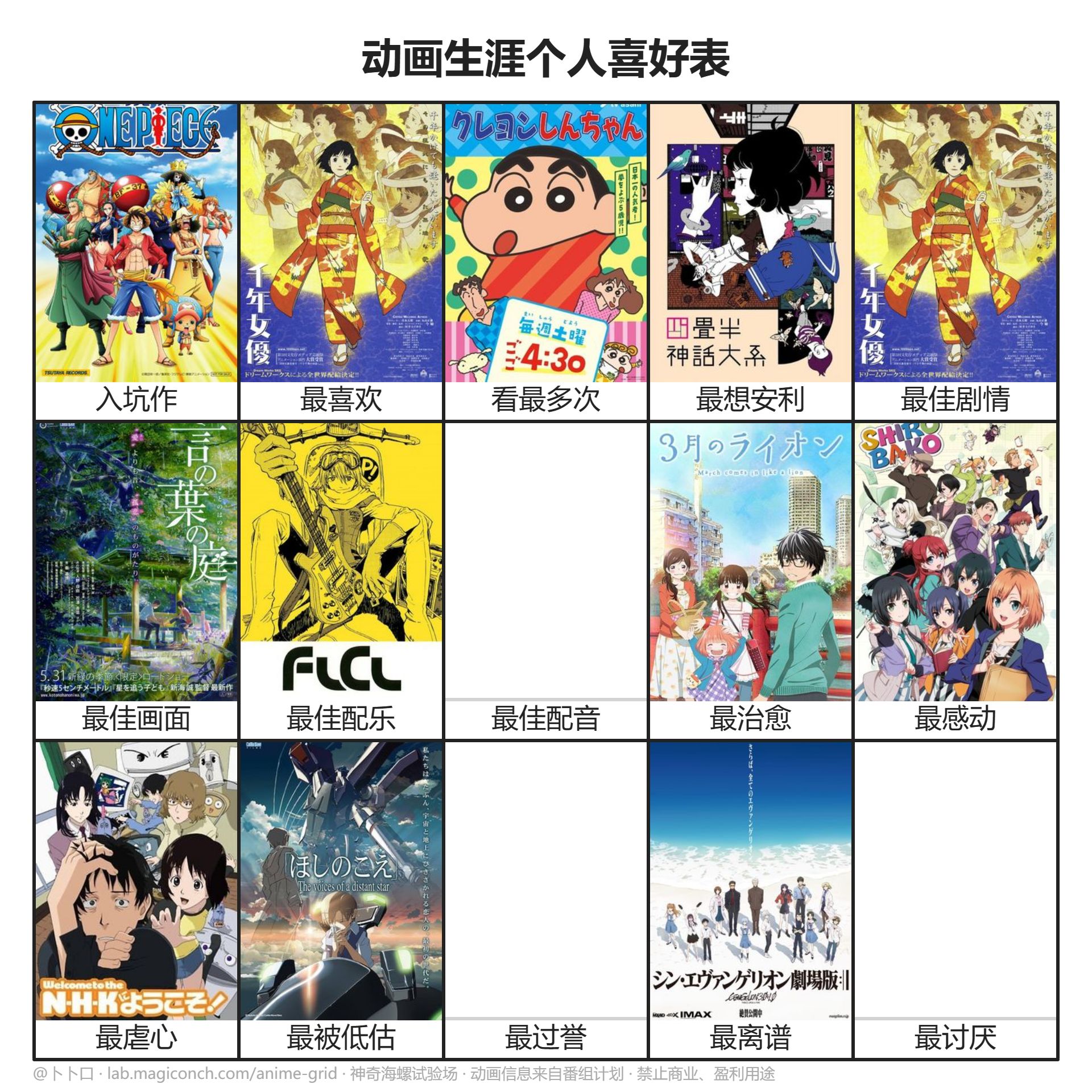 [讨论] 想看看坛友的动画生涯个人喜好(新增拓展版) |