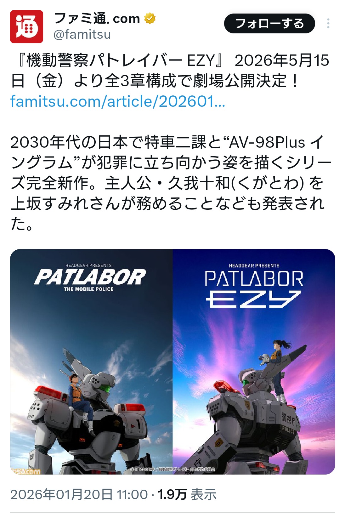 [新闻] 机动警察新作动画『机动警察Patlabor EZY』 |