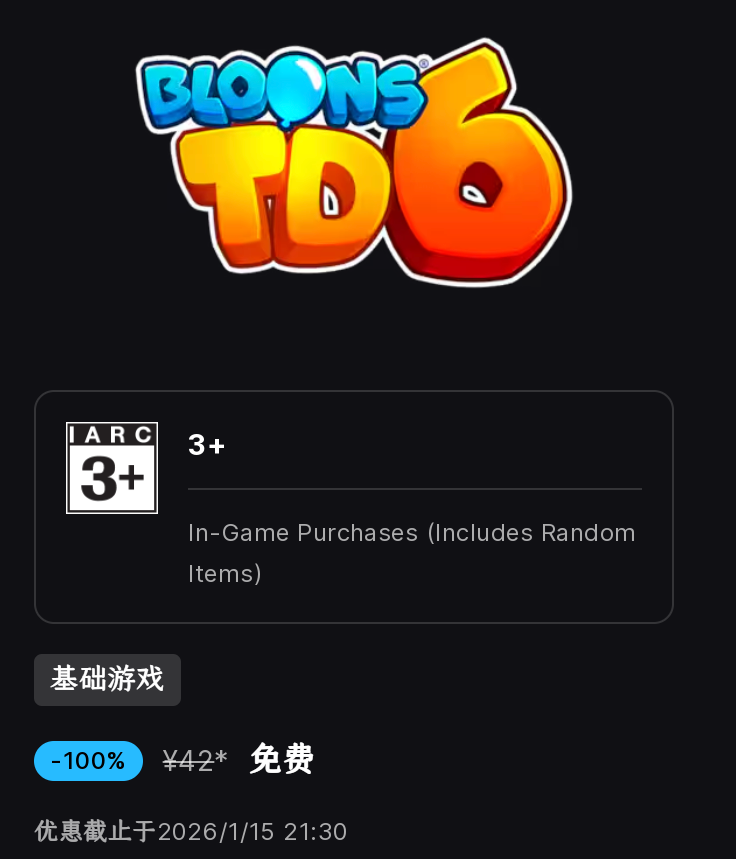 [多平台] S1塔防游戏推荐贴,抛砖引玉 26.1.9 Epic限免猴子打气球
