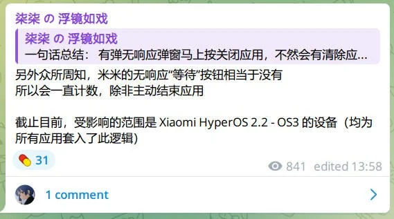 截止目前,受影响的范围是 Xiaomi HyperOS 2.2 - OS3 的设备(均为所有应用套入了此逻辑)
