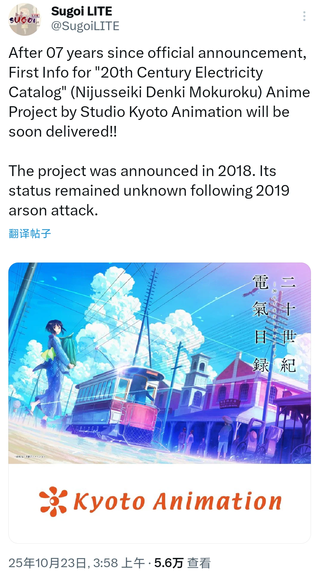 [新闻] 京都动画2026新作发表会 10月25日【二十世纪电气目录 2026年】 |