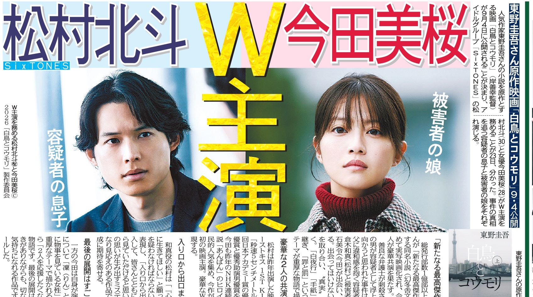 [电影] 东野圭吾《白鸟与蝙蝠》真人电影化 26年9月4日上映 |