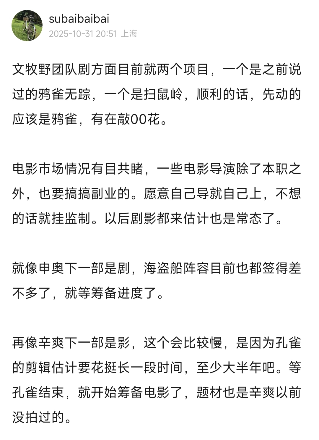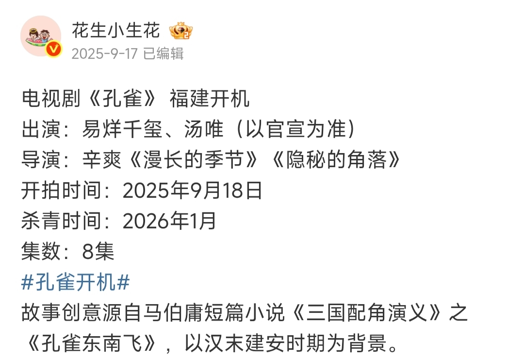 [其他] 辛爽 新作原创剧集《孔雀东南飞》(预计2026年播出) |