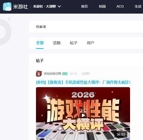[屁股] 极客湾手机游戏性能横评被干掉了 |