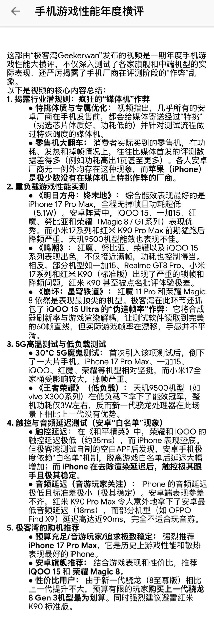 [屁股] 极客湾手机游戏性能横评被干掉了 |