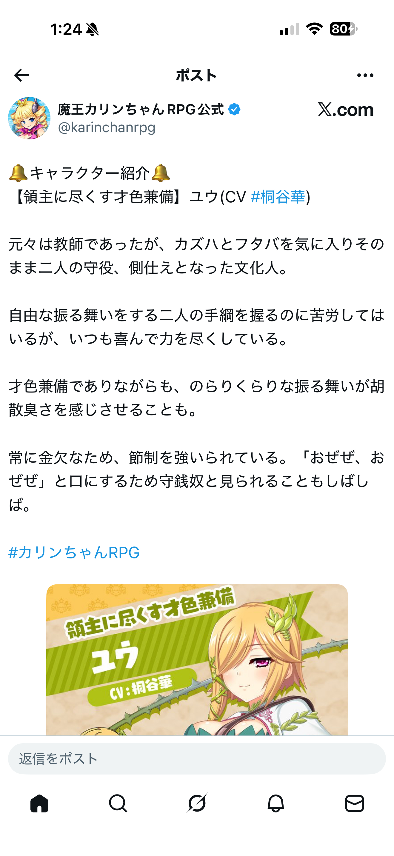 [声优] 声优 桐谷华 在《魔王カリンちゃん RPG》中的角色ユウ |