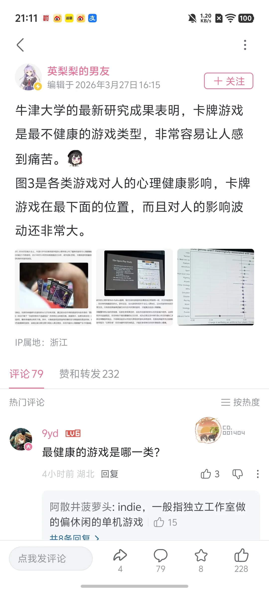 [其他] 牛津大学研究表明卡牌游戏最易让玩家痛苦,游戏时长与幸福感无关 |